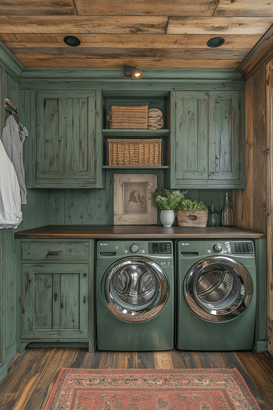 An antique washboard or vintage cabinet brings unexpected charm and character to your laundry room. These functional, weathered pieces add character to the space, making chores feel less like a task and more like a nostalgic experience. With every faded surface, they transform your laundry room into a welcoming, cozy space.