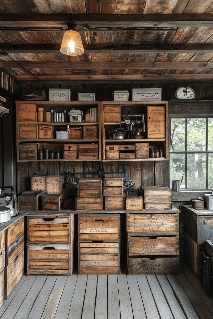 Repurposed tools bring rustic creativity into your garage, making them both functional and stylish antique farmhouse decor ideas. Vintage wooden crates, metal bins, and weathered shelving bring charm while keeping your space organized. These pieces tell a story of craftsmanship, adding personality to your garage.