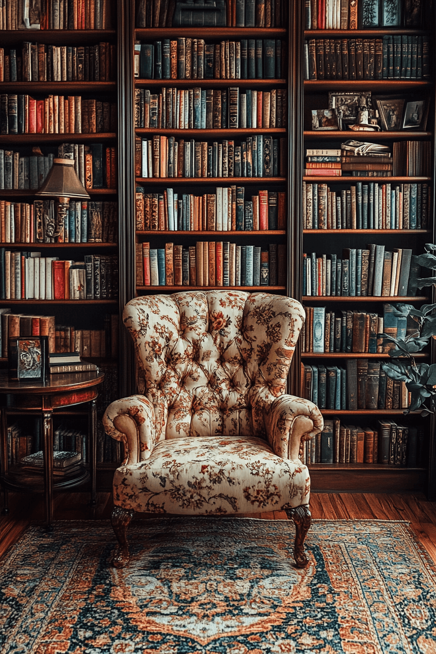 A vintage bookshelf creates a cozy, collected feel in your reading nook or living room. Weathered wood and aged finishes add character and warmth to the space, making it feel grounded. Fill it with antique books and personal treasures to enhance the nostalgic vibe. It’s a perfect balance of function and charm.