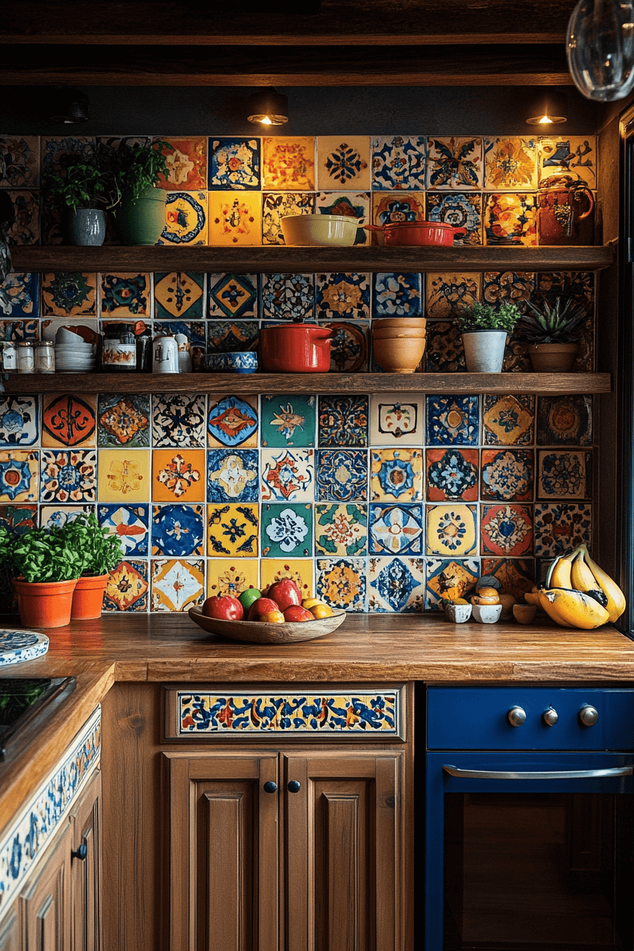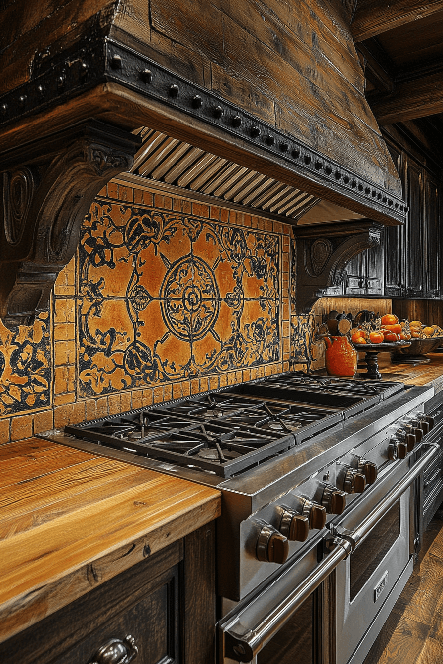 Artisan craftsmanship elevates backsplash kitchen ideas when hand-painted tiles are used as statement features. Each tile contributes personality through intricate detail and color. These designs work beautifully in eclectic and vintage-inspired kitchens. Functionality meets artistic storytelling. The space feels warm and expressive.