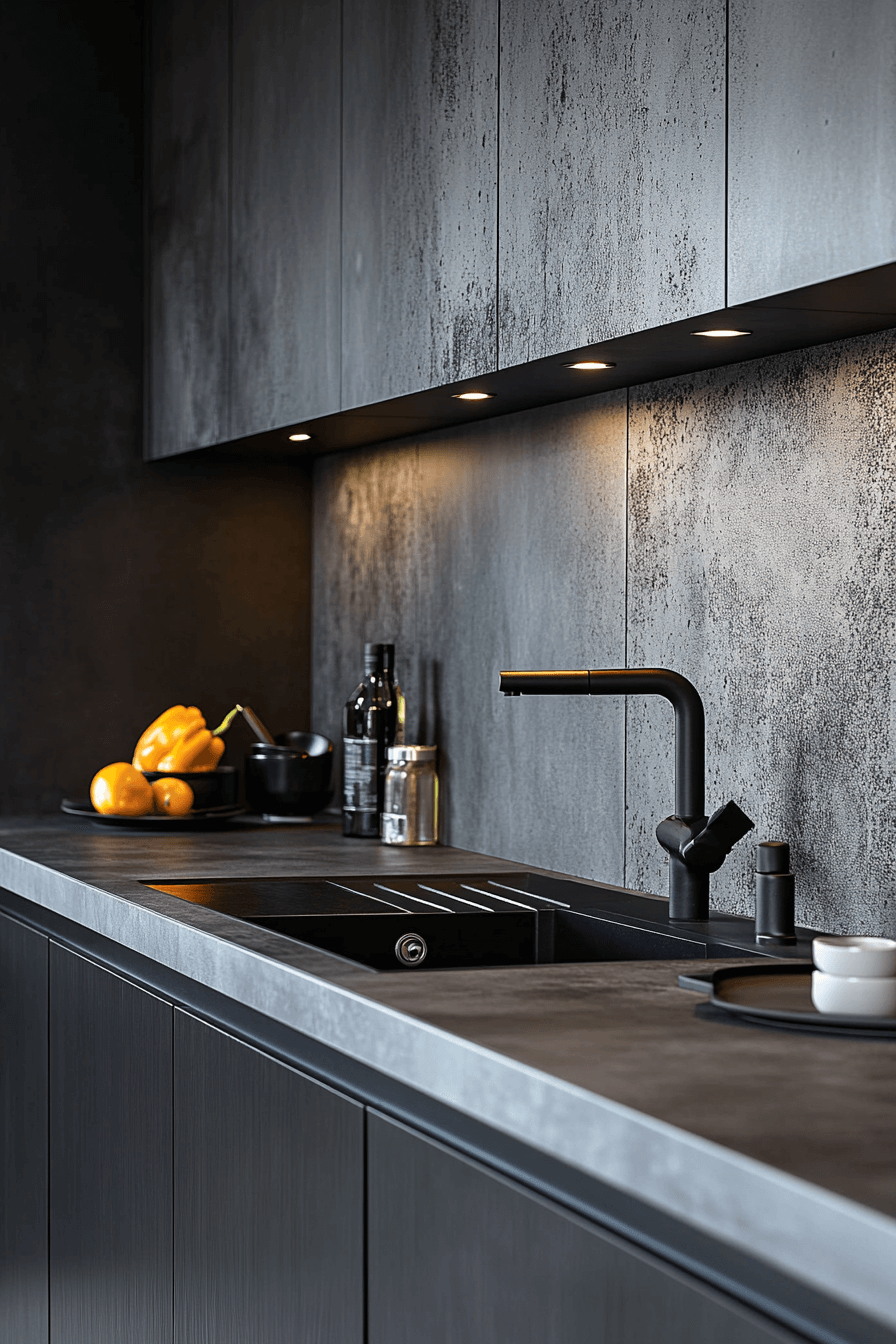 Minimalist edge transforms backsplash kitchen ideas that incorporate concrete finishes. Subtle variations add depth while maintaining simplicity. Concrete pairs well with modern cabinetry and industrial accents. Heat resistance enhances functionality. The design feels bold and restrained.