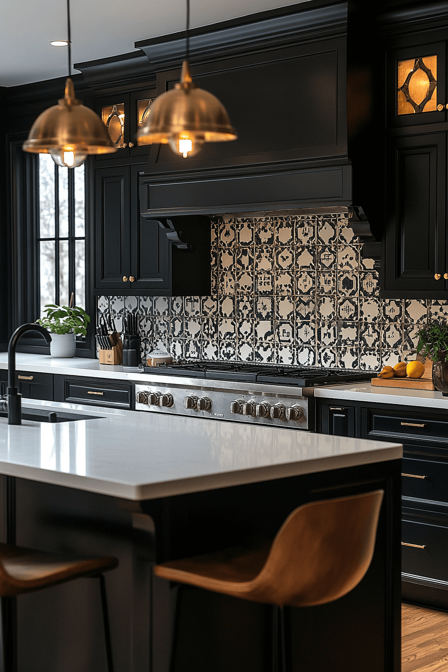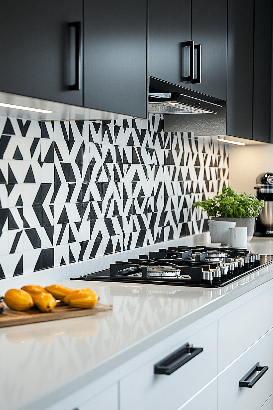 Bold contrast defines backsplash kitchen ideas that rely on black-and-white palettes for visual clarity. The crisp combination works across multiple kitchen styles. Pattern variations allow control over intensity. Clean lines keep the design timeless. The result feels confident and polished.