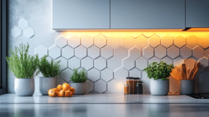 Bold dimension defines backsplash kitchen ideas that rely on three-dimensional tile designs. Textured surfaces interact with light to create depth. These tiles add impact without clutter. They work especially well in modern kitchens. The design feels sculptural and immersive.
