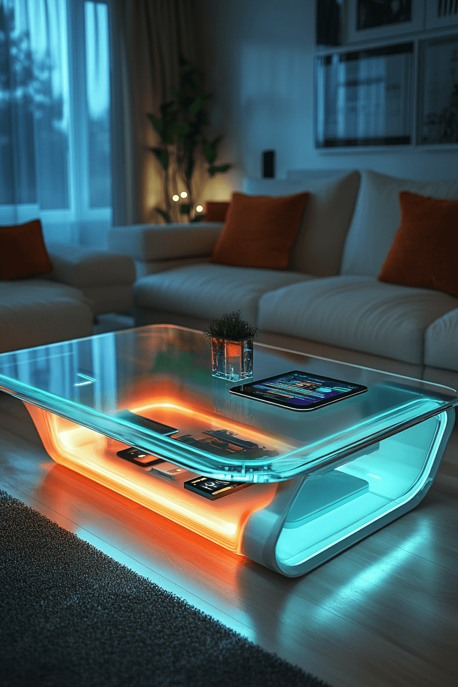 Modern living meets innovation with coffee table decor ideas designed for smart functionality. Sleek accessories hide tech features without disrupting the design. Clean lines keep the setup visually calm. Practicality blends seamlessly with style. The table feels current and refined.