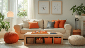 Playful practicality defines coffee table decor ideas designed for kids and families. Soft materials and interactive pieces balance safety and style. The table stays functional for daily life. Clean-up feels easy and stress-free. Joy fills the space.