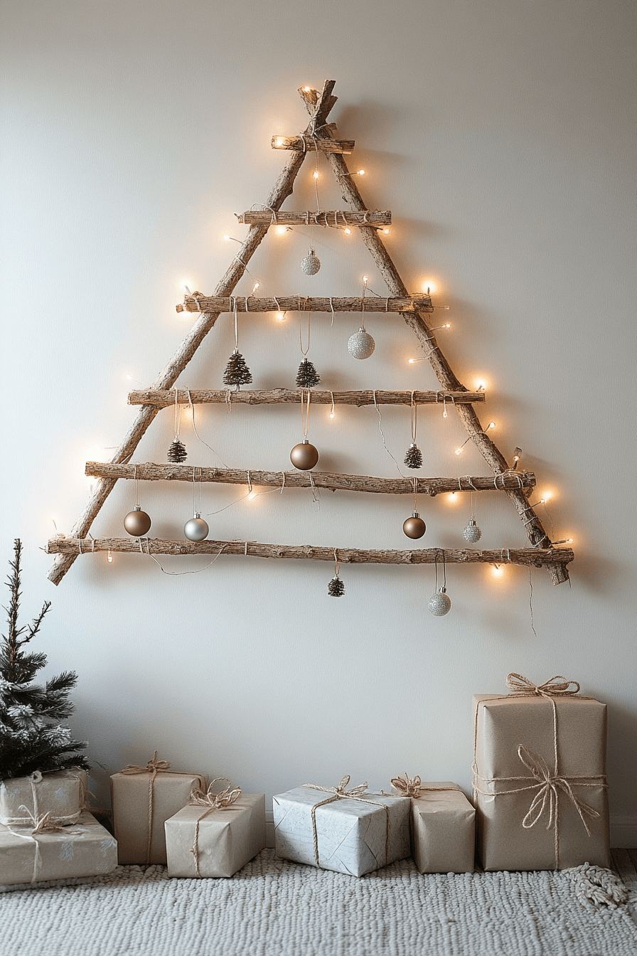 A wall tree becomes a creative symbol of design and simplicity. With minimalist Christmas decor, even small spaces can feel joyful and refined. Simple greenery, twinkle lights, or photo frames form modern silhouettes. The result is airy and inspiring.