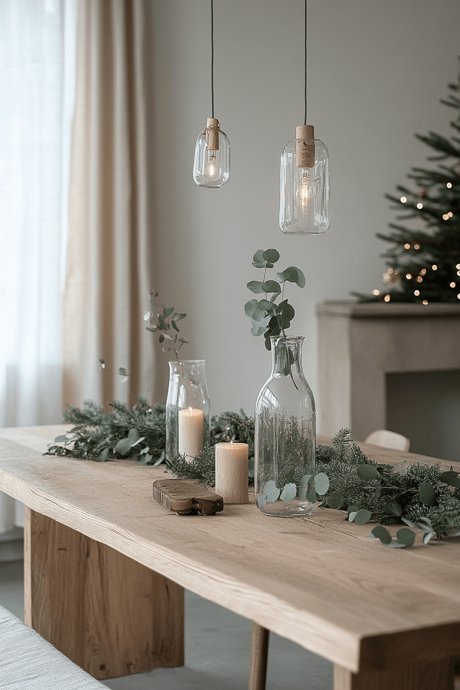 Lush greenery brings freshness to your minimal palette, adding vibrancy without weight. When paired with minimalist Christmas decor, pine and eucalyptus feel modern yet timeless. Their natural texture balances sleek materials and soft neutrals. Each stem becomes part of an elegant visual rhythm.