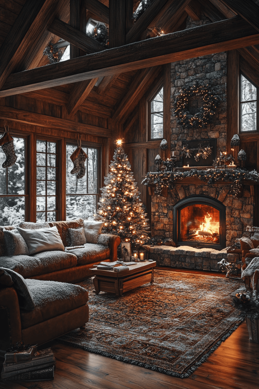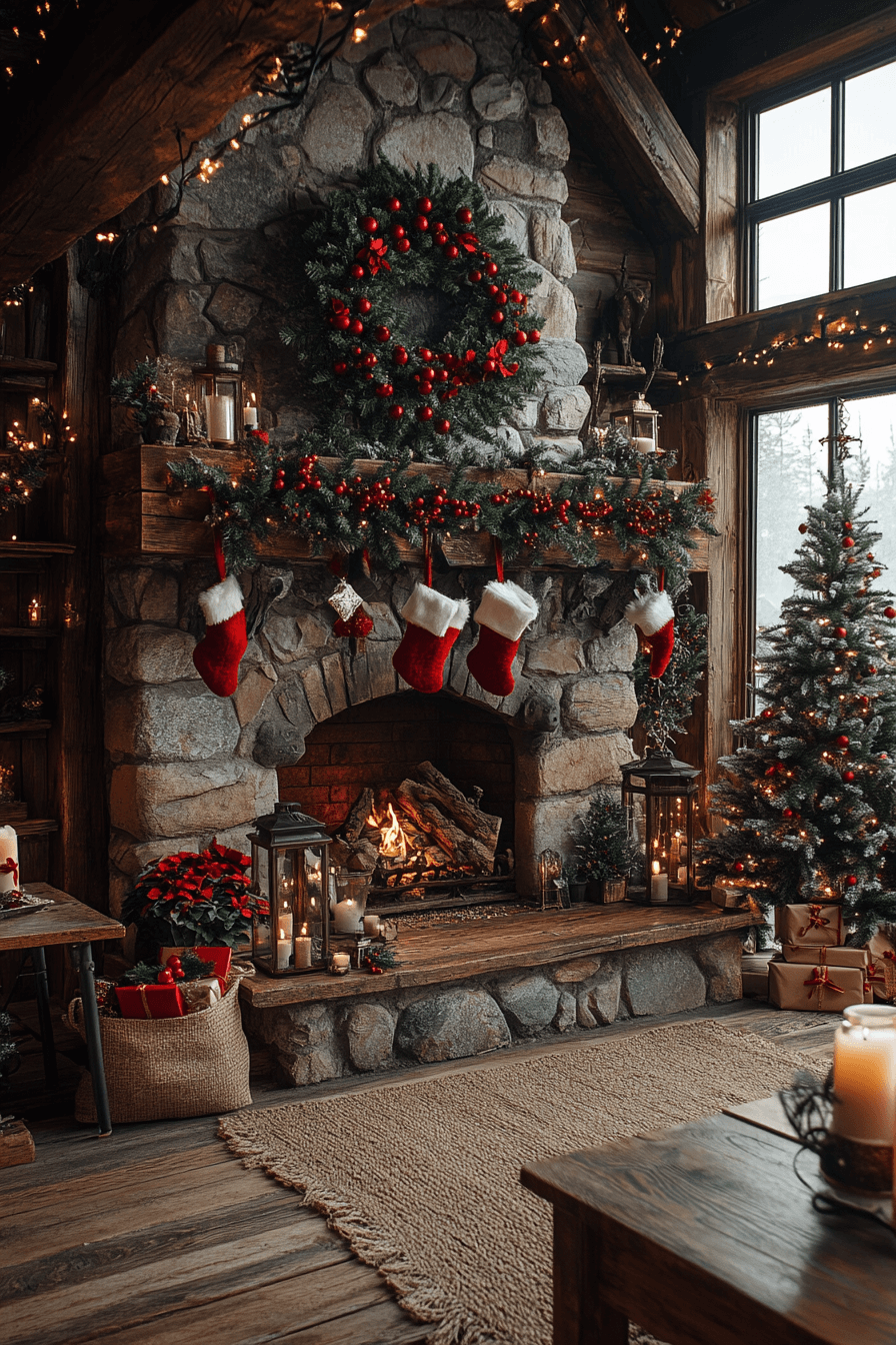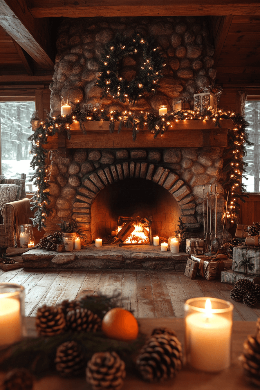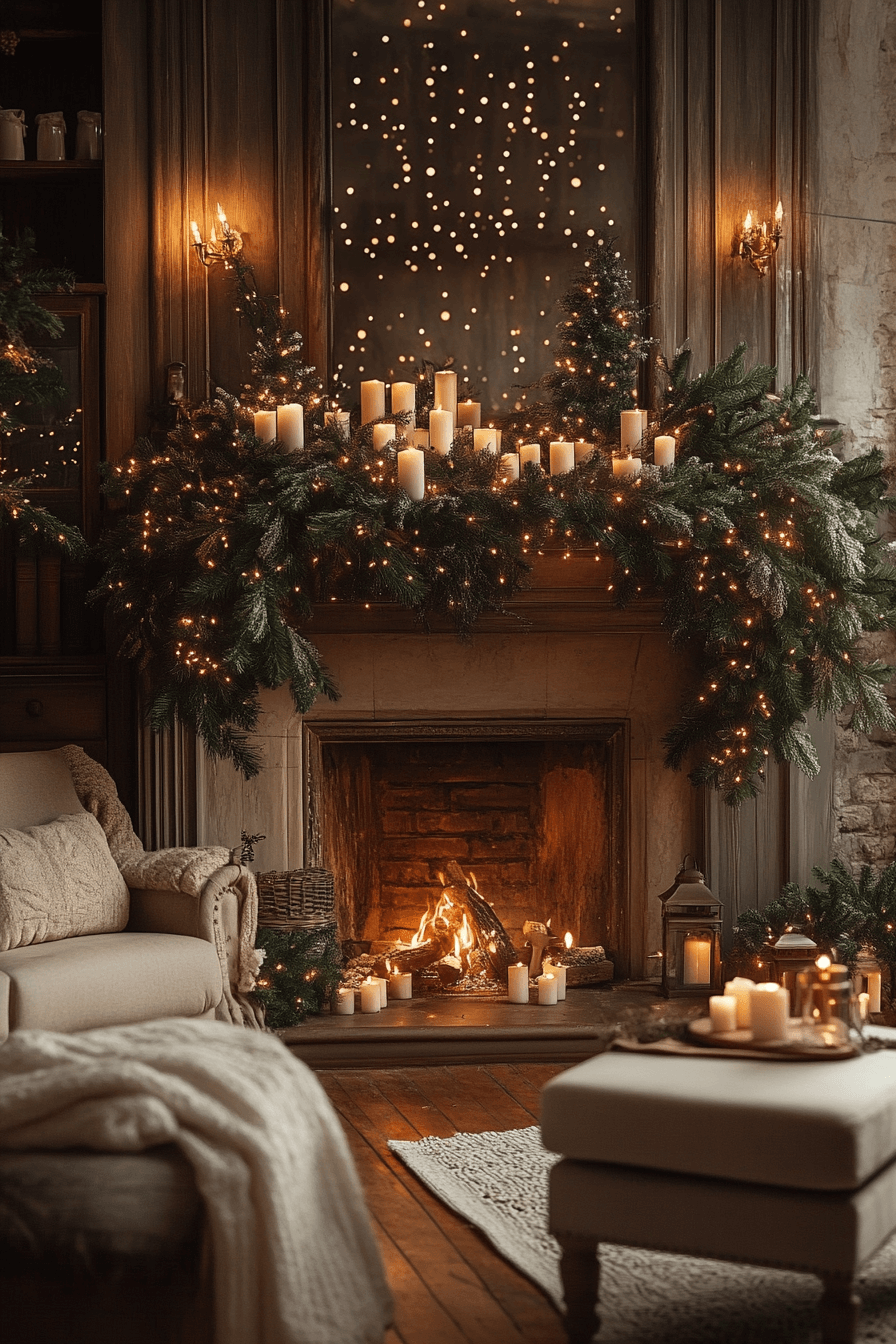 Evergreen garlands and glowing candles make your mantel a peaceful focal point. The layered textures of natural Christmas decor bring depth and emotion. It’s timeless, soft, and full of nostalgia. Every flame flickers with elegance.