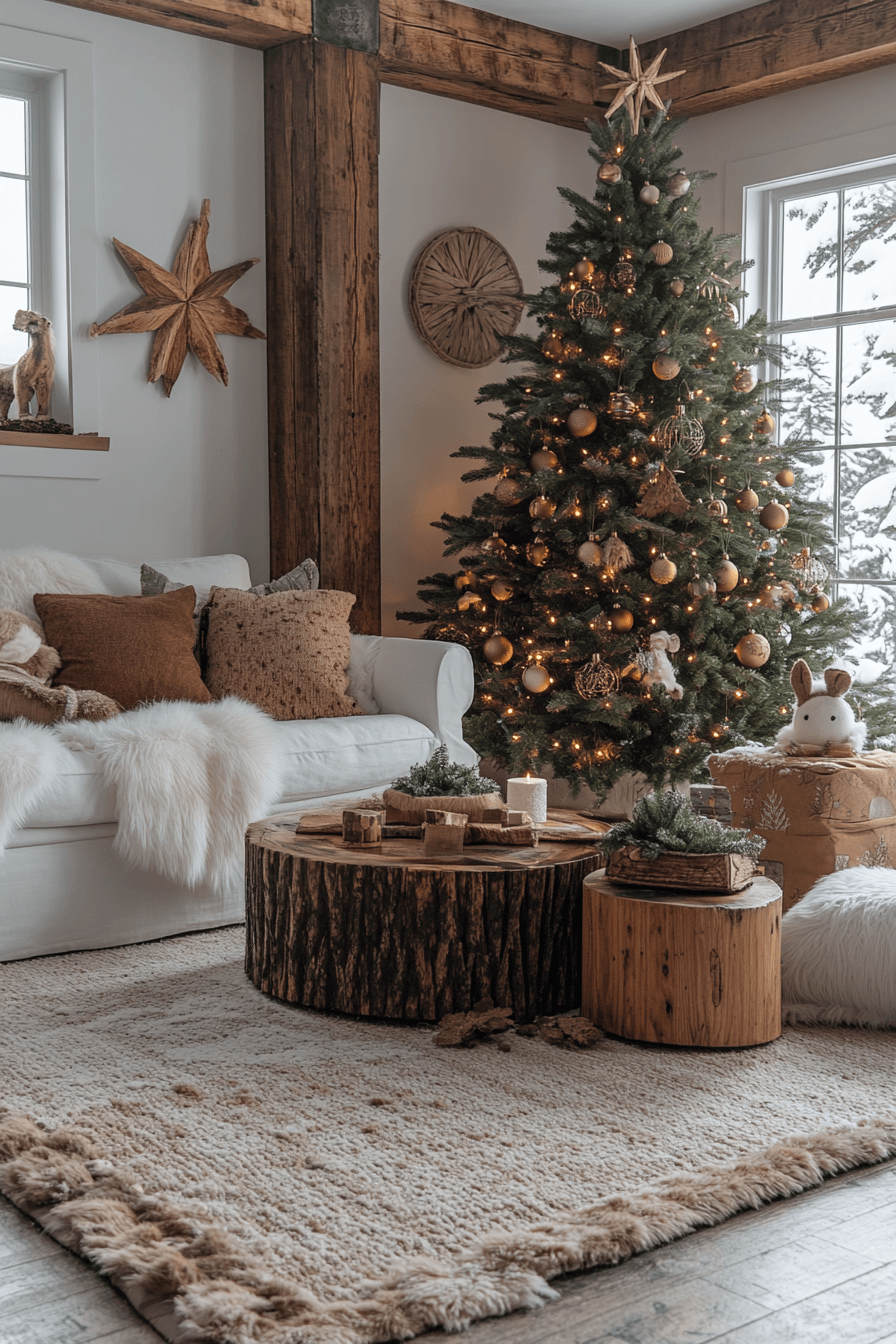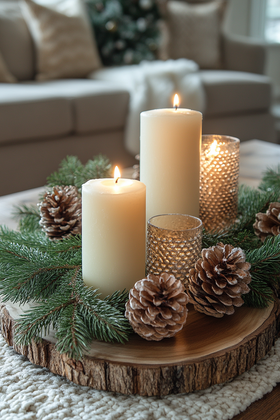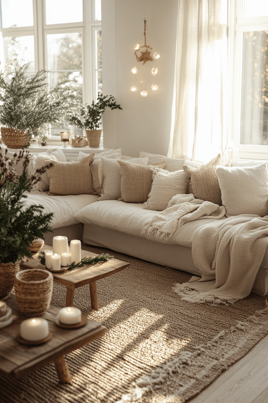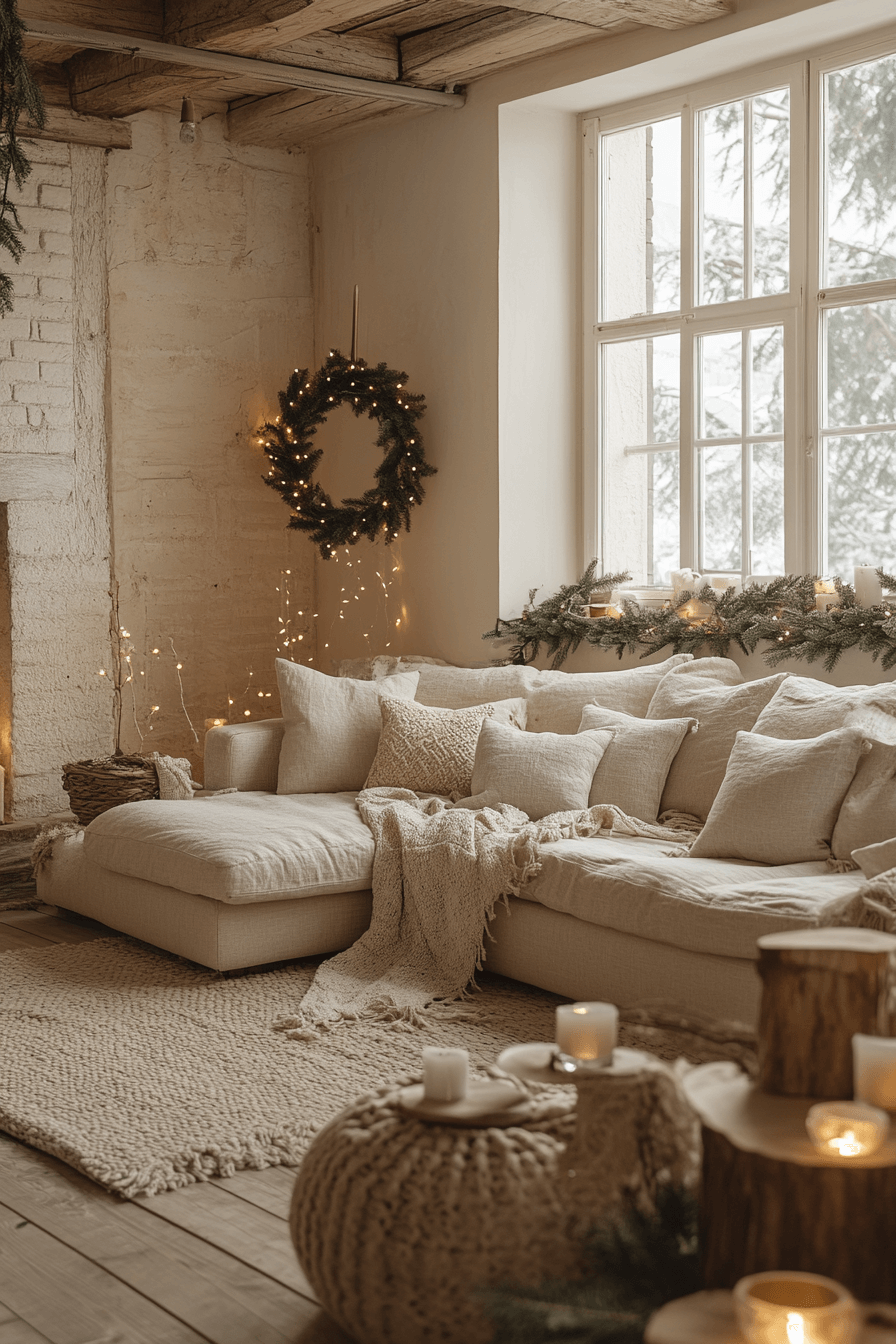 Soft candlelight, pine branches, and neutral tones fill your home with quiet comfort. The organic layers of natural Christmas decor create a space that feels peaceful and pure. Wooden accents and woven textures make everything glow with warmth. Every detail whispers understated beauty.