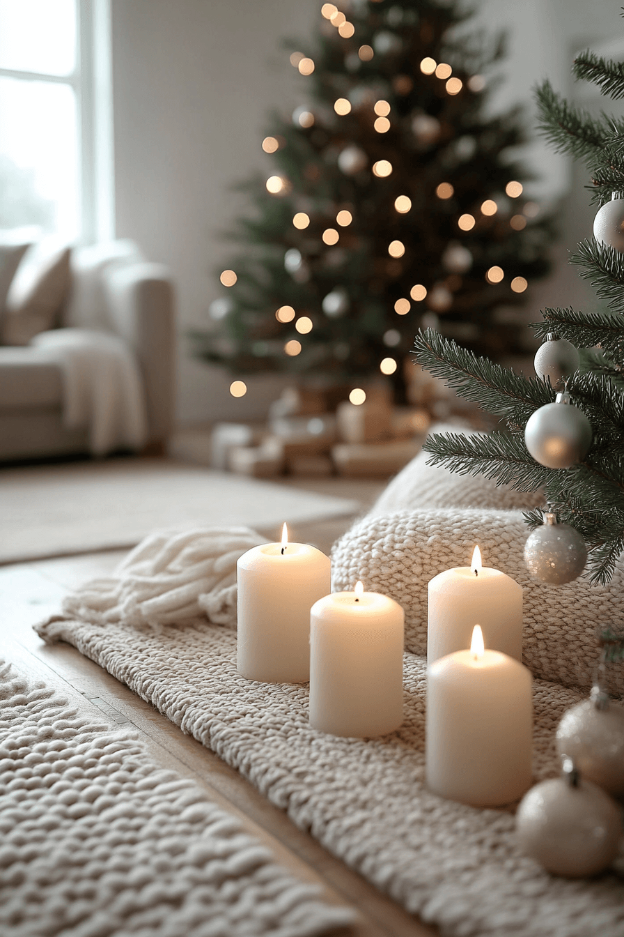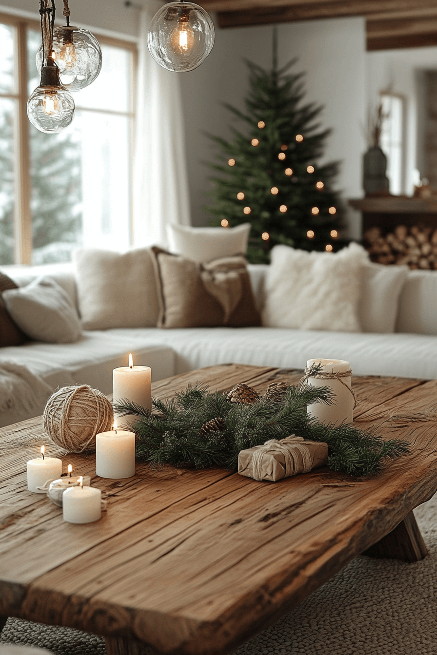 Light wood, snowy whites, and soft flickers of candlelight bring serenity to your home. The quiet tones of natural Christmas decor promote calm and clarity. Every glow feels comforting and pure. It’s a minimal masterpiece of light and texture.