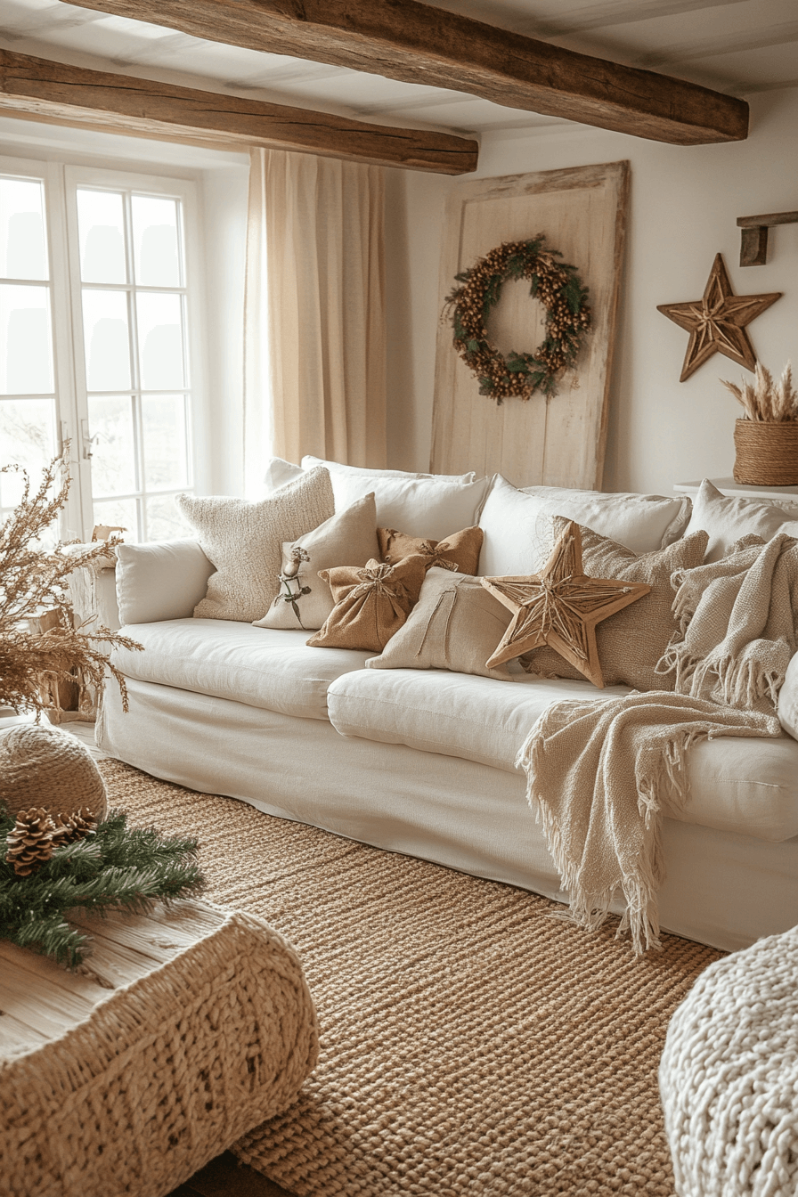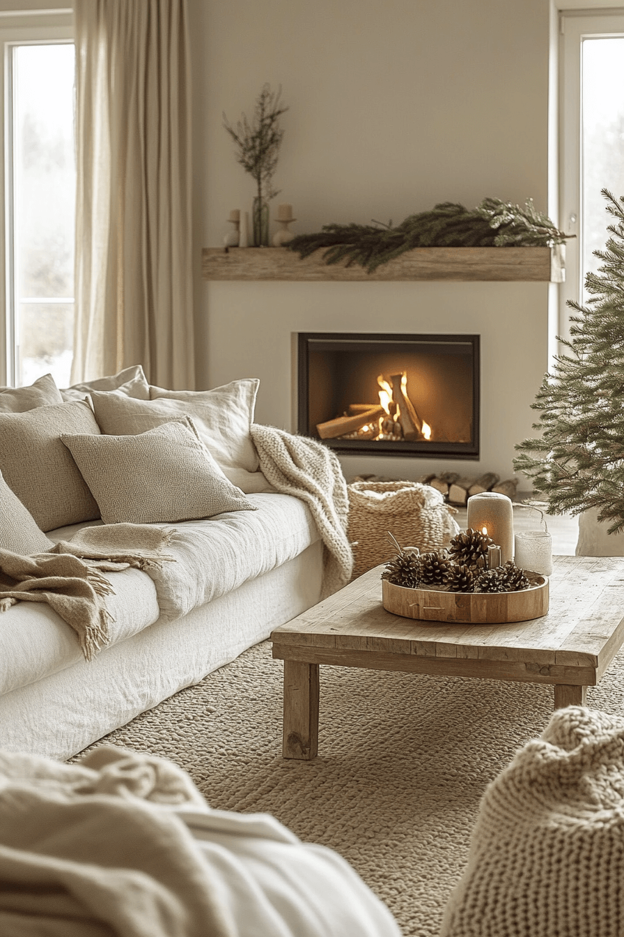 Organic textures and soft shadows set the tone for a natural, refined home. The depth of natural Christmas decor lies in its layers—linen, wood, and candlelight. The result feels grounded yet ethereal. Each tone is calming and connected to nature.