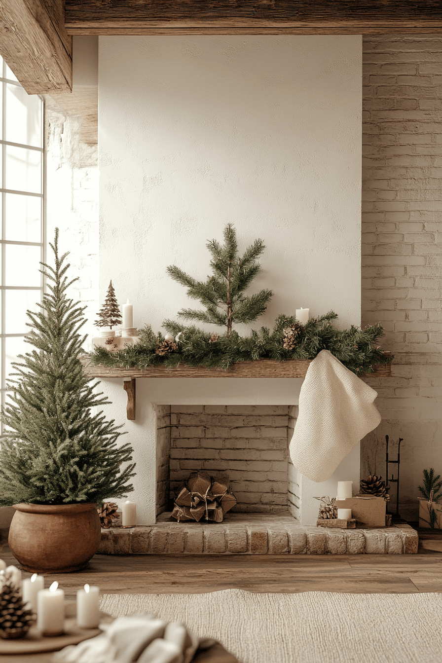 Little woodland details and soft fairy lights turn your home into a storybook retreat. The playful side of natural Christmas decor shines with charm and personality. Pine branches and small figurines complete the cozy magic. It’s whimsical yet tasteful.